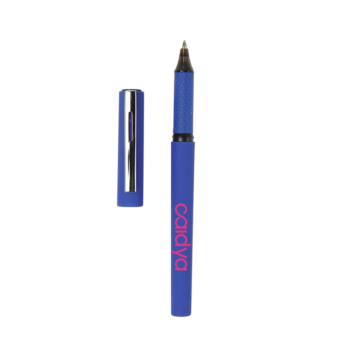 The Glendale VGC gel pen is a capped, brightly colored barrel with matching colored grip, chrome clip, and writes in a black gel ink with medium point.